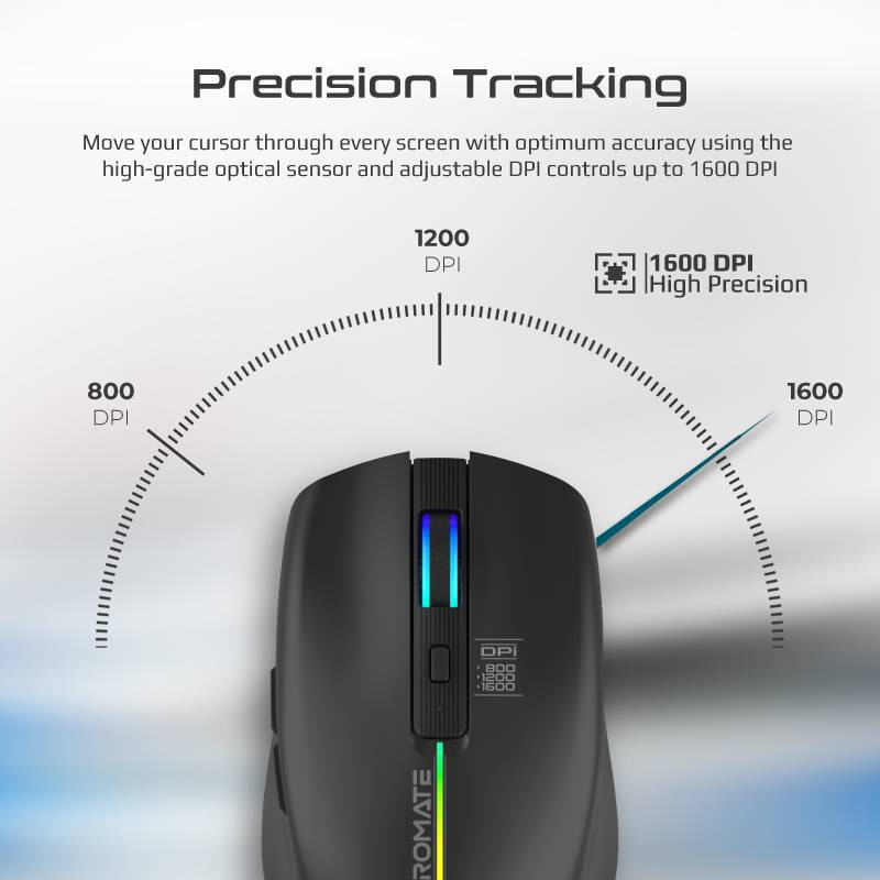 دقة 1600 نقطة في البوصة قابلة للتعديل لتتبع سلس ودقيق: